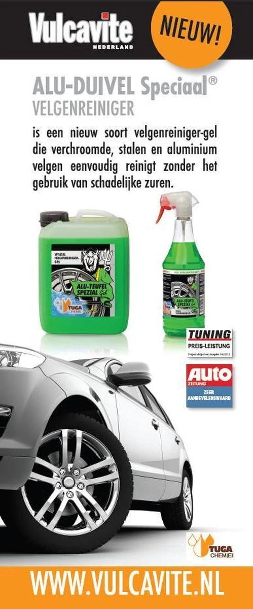 lu-Duivel-Speciaal® is een nieuw soort velgenreiniger-gel die eenvoudig verchroomde, stalen en aluminium velgen reinigt zonder het gebruik van schadelijke zuren.
