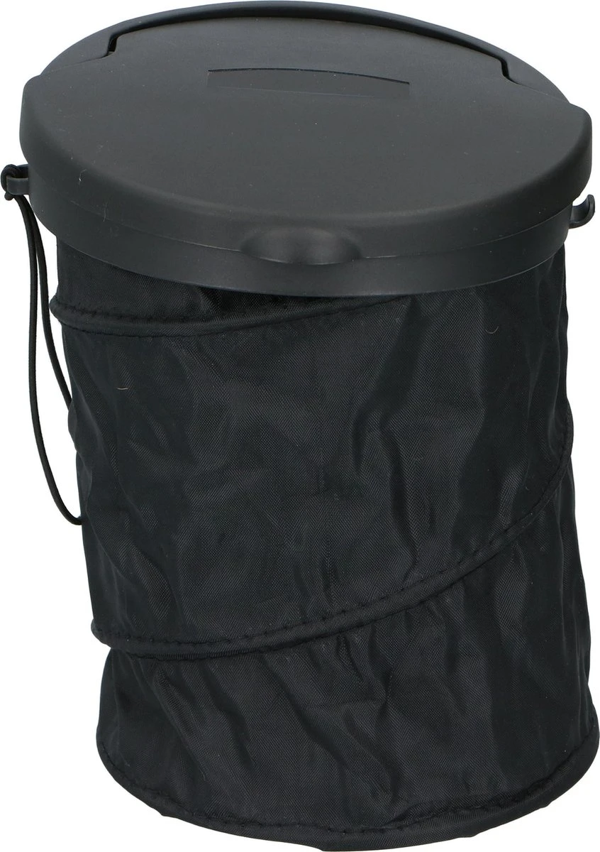 Hetvuilnisbakje heeft een doorsnede van 16 centimeter en is uitgevouwen zo’n 20,5 centimeter hoog. Dat geeft hem dus een ruime inhoud van zo’n 4liter. De prullenbak is voorzien van een deksel zodat je geen lasthebt van onaangename geurtjes en het afval niet eruit kan vallen als je eenseen scherpe bocht neemt. Hij kan plat opgevouwen worden. Zo kun je deautoprullenbak gemakkelijk opbergen als je hem niet nodig hebt.