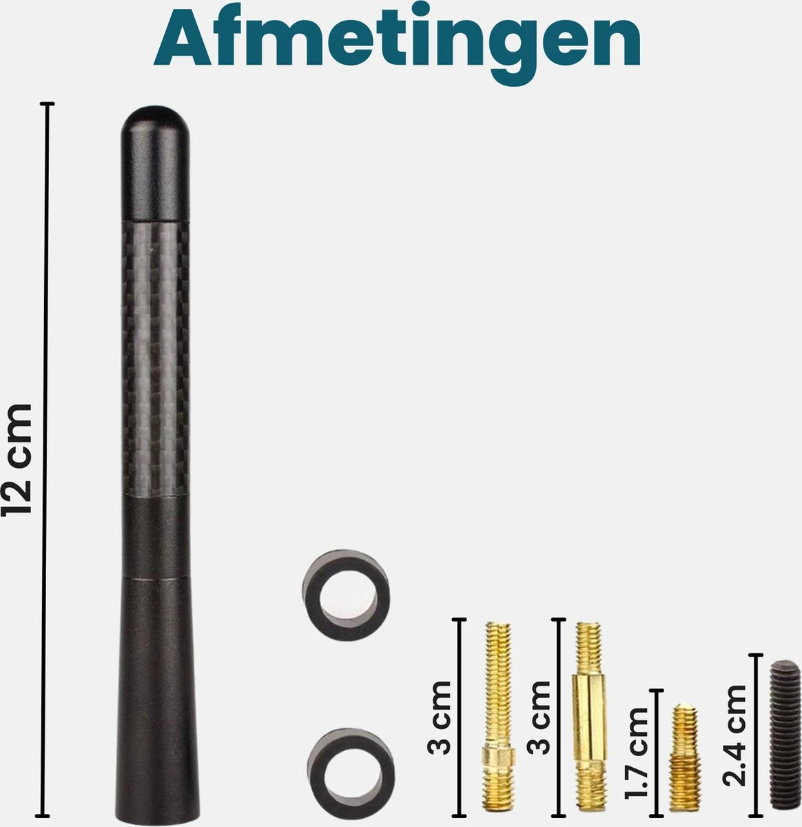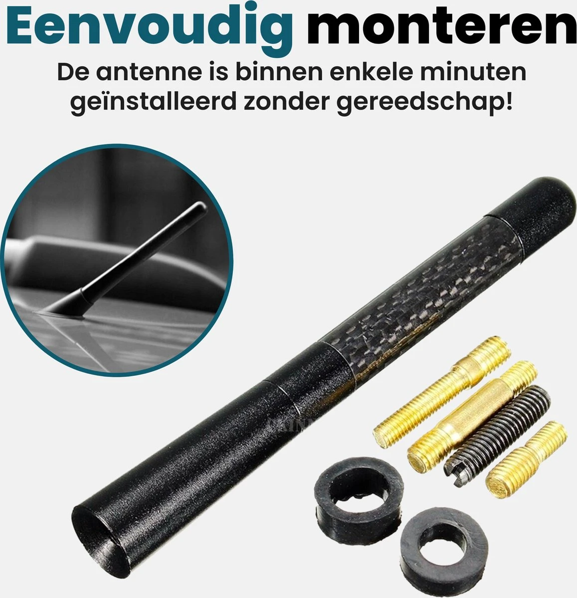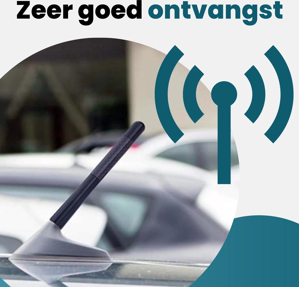 De auto antenne is universeel toepasbaar is op bijna alle auto’s. De antenne is circa 10 cm lang, gemaakt van aluminium en afgewerkt met een zwart carbon motief. De antenne biedt ondanks het compacte formaat een goede AM/FM ontvangst.