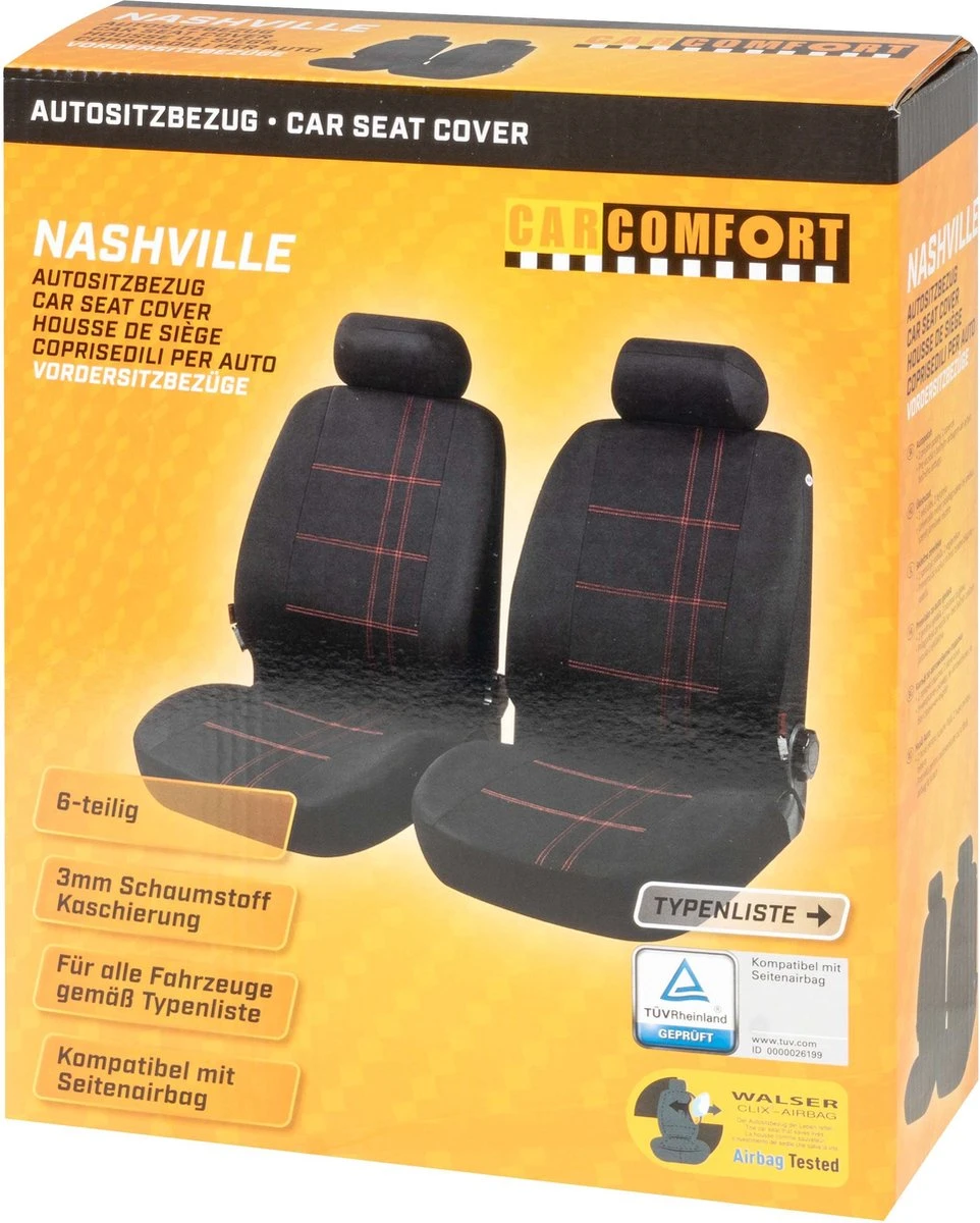 Iedere dag rijdt u in uw auto en heeft u een bescherming nodig voor uw autostoelen om de bekleding zo lang mogelijk mooi te houden. De Nashville-voorstoelhoezen voldoen precies aan uw vereisten. Een modern design gecombineerd met een eenvoudige montage en goede materiaalkwaliteit, zodat u lang plezier hebt van de nieuwe stoelhoezen. Het artikel is universeel geschikt voor vele gebruikelijke autotypen en bestaat uit twee voorstoelhoezen en twee hoofdsteunhoezen.