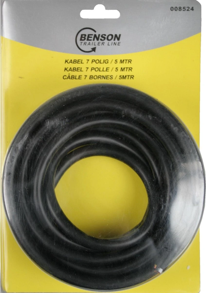 Zoekwoorden: Benson aanhangwagen kabel, 7-polig, 1 mm², 5 meter, zwart, aanhanger, trailer, caravan, PVC, 12 volt, aansluitschema.