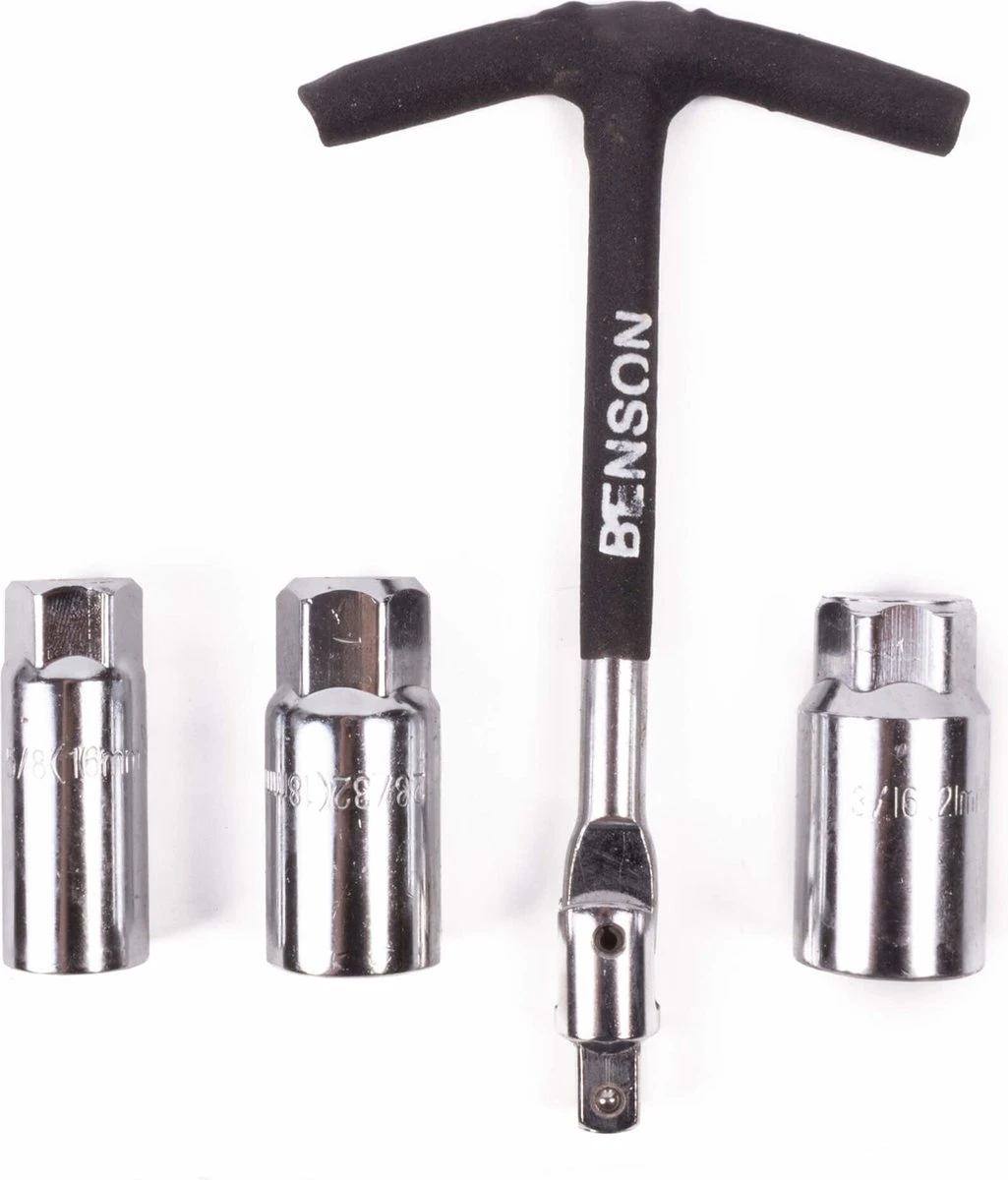 Deze bougiesleutel set is 4 delig en beschikt over een selectie aan metrische doppen met een 3/8 inch aansluiting. Deze set is voorzien van een T-sleutel met kniegewricht, waarmee je extra kracht kunt zetten wanneer je een bougie demonteert. De doppen zijn van chroom vanadium gemaakt en hebben een lengte van 55 – 65 mm ideaal voor garages en werkplaatsen.