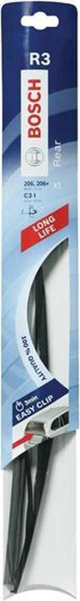Met deze ruitenwisser van Bosch ben je altijd voorzien van een schone ruit. De ruitenwisser is gemaakt van 100% natuurrubber en blijft flexibel bij alle temperaturen. De ruitenwisser is eenvoudig te monteren dankzij het easy-clip systeem. De ruitenwisser is geschikt voor de Peugeot 206, Peugeot 206+ en Citroën C3 I.