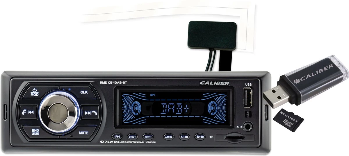 De Caliber RMD054DAB-BT autoradio met bluetooth heeft een 1 DIN formaat, waardoor de radio in verschillende typen auto’s is te plaatsen is. De DAB+ radio zorgt voor de beste geluidskwaliteit zodat jij kunt genieten van je favoriete zenders. Wil je een eigen playlist opzetten? Dankzij de diverse aansluitingen, zoals AUX (3,5 mm), USB en een SD-kaartlezer is dit mogelijk. Met deze autoradio is het ook mogelijk om handsfree te bellen. Met een vermogen van 4 x 75 watt geniet je bij elke autorit optimaal van de muziek!