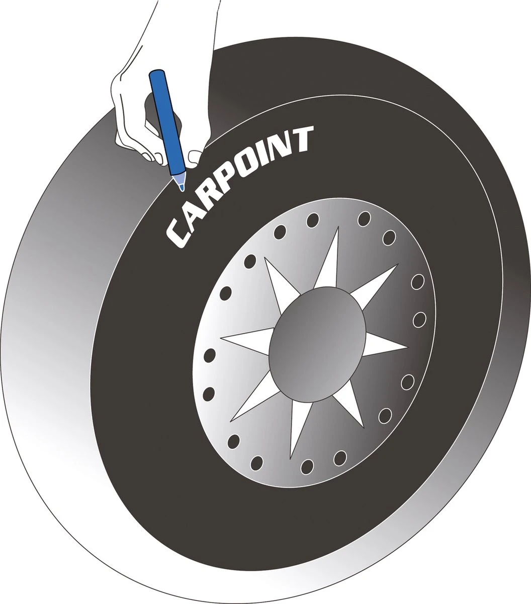 Met de Carpoint bandenmerkstift maak je gemakkelijk witte letters op de zijkant van je banden. Mooi om het merk van de band sterk uit te lichten of uw winter- en zomerbanden te markeren.