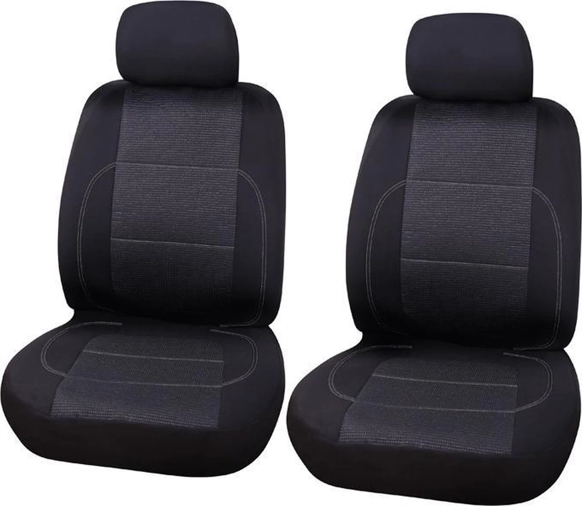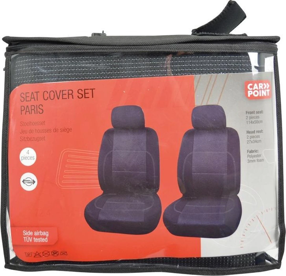 Carpoint complete universele 4-delige zwart/grijs pasvorm stoelhoesset Paris voor de voorstoelen. Beschermt de originele bekleding tegen vuil en slijtage. De set bestaat uit twee voorstoelen, twee hoofdsteunen. Wasbaar op 30 graden. Geschikt voor auto’s met een zij-airbag.