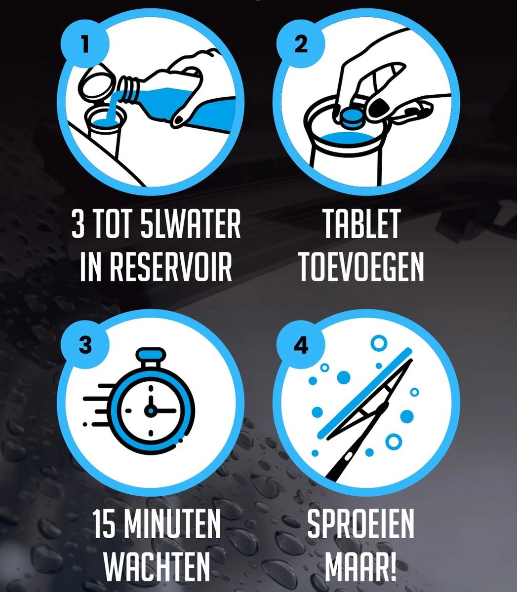 Met de ruitenwisservloeistof tabletten van Daily Needs doen we een poging om deze problemen op te lossen, de tabletten werken als volgt: