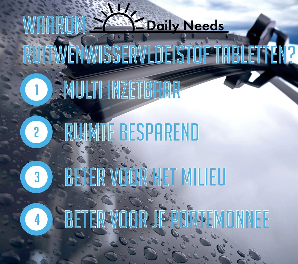 De voordelen van Daily Needs ruitenswisservloeistof tabletten nog eens op een rijtje: