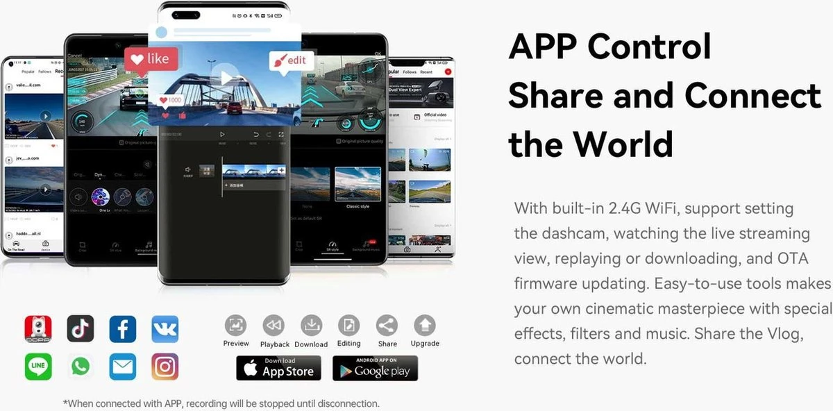Deze DDPai Mola N3 Pro 2CH Wifi GPS is uitgerust met Wifi en kan daarom met de DDPai app worden gebruikt. De gebruiksvriendelijke app is handig te bedienen en kan worden gebruikt om live of opgeslagen beelden te bekijken en om instellingen te wijzigen. Ook eventuele firmware updates kunnen handig via de App worden uitgevoerd.