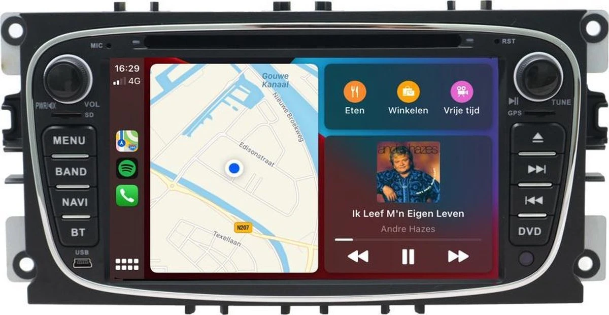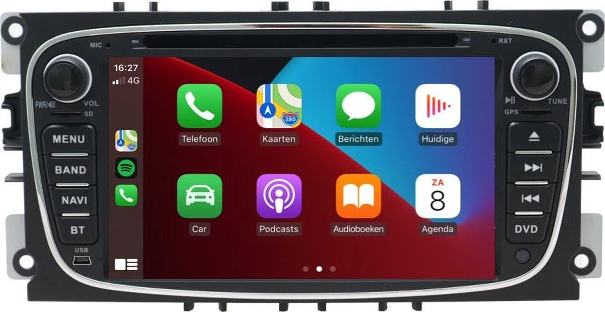 Wanneer je jouw telefoon via usb met de Davilon autoradio verbind, kun je onder andere routebeschrijvingen opvragen, telefoongesprekken voeren en naar muziek luisteren. Je kunt zelfs whatsapp berichten inspreken die als tekst worden verzonden. Met CarPlay kun je ook radio applicaties bedienen die betere ontvangst hebben dan DAB+, hoe vet is dat?