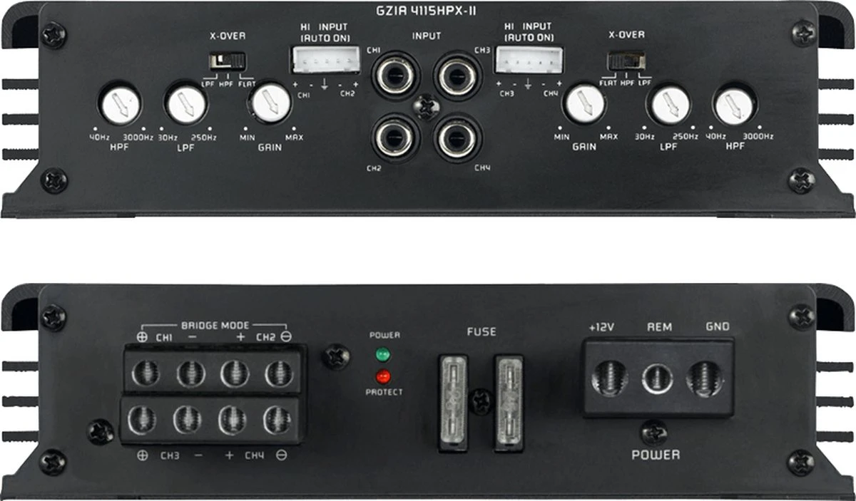 - Vermogen op 2 ohm: 4 x 115 Watt