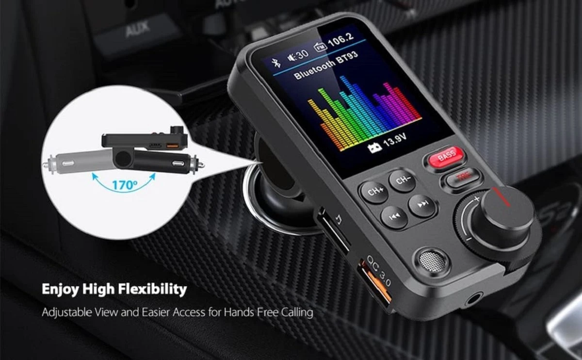 FM Transmitter Pro Autolader – Snel opladen – Bass & Treble-regelaar – 7 EQ-modi