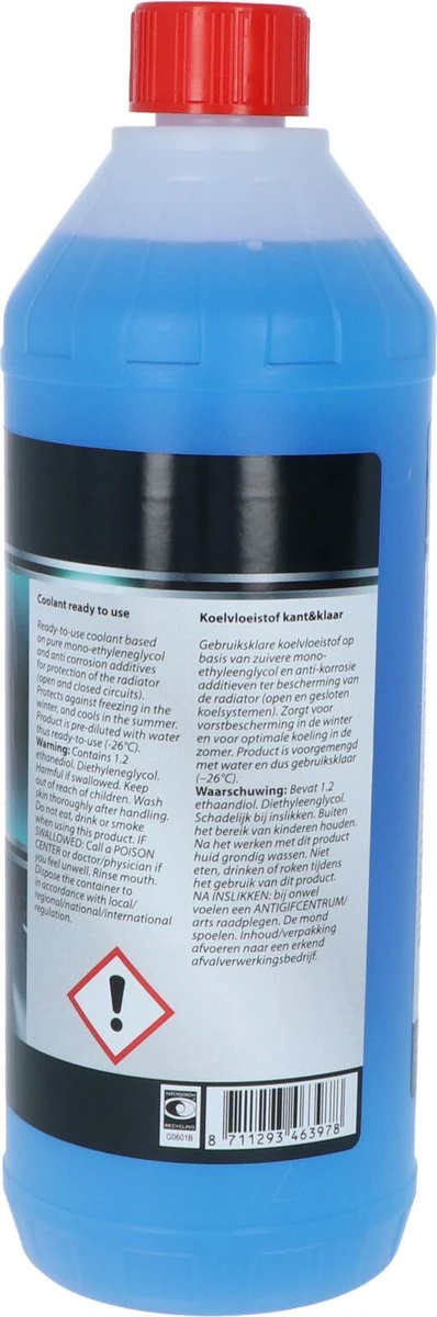 Tast geen lak, rubber of metaal aan en de gebruiksklare vloeistof is veilig voor uw radiator en voorkomt kalk- en schuimvorming. Inhoud 1 liter.