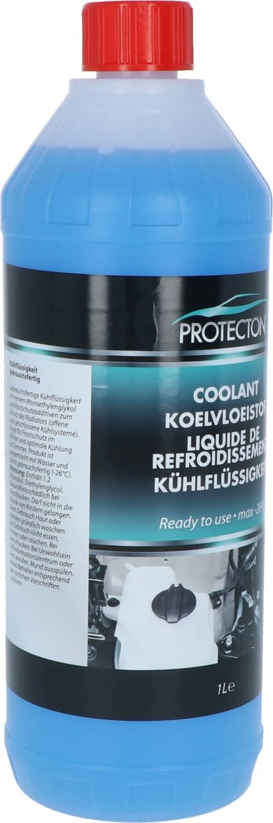 Protecton koelvloeistof is kant en klaar en de vloeistof kan zonder verdunning direct gebruikt worden en geeft bescherming tot -26° C. Protecton koelvloeistof beschermt het hele jaar tegen vorst en corrosie.