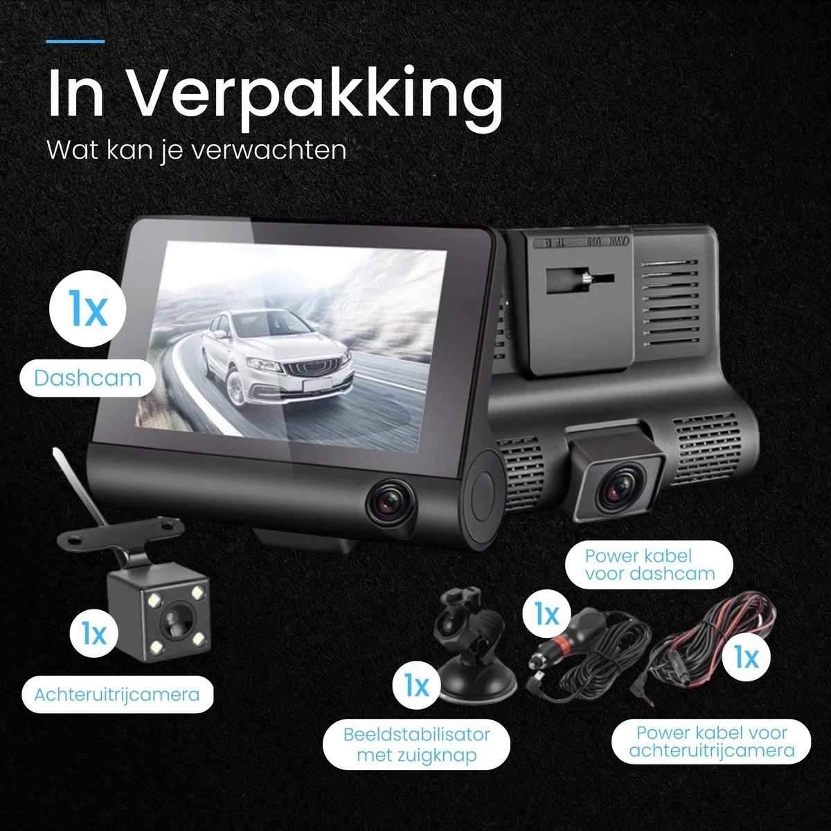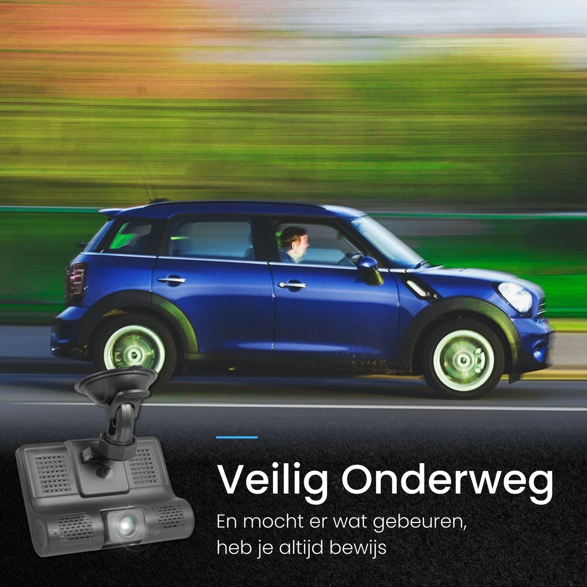 Op 3x manieren/hoeken je autorit filmen Nachtmodus is beschikbaar