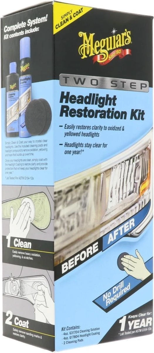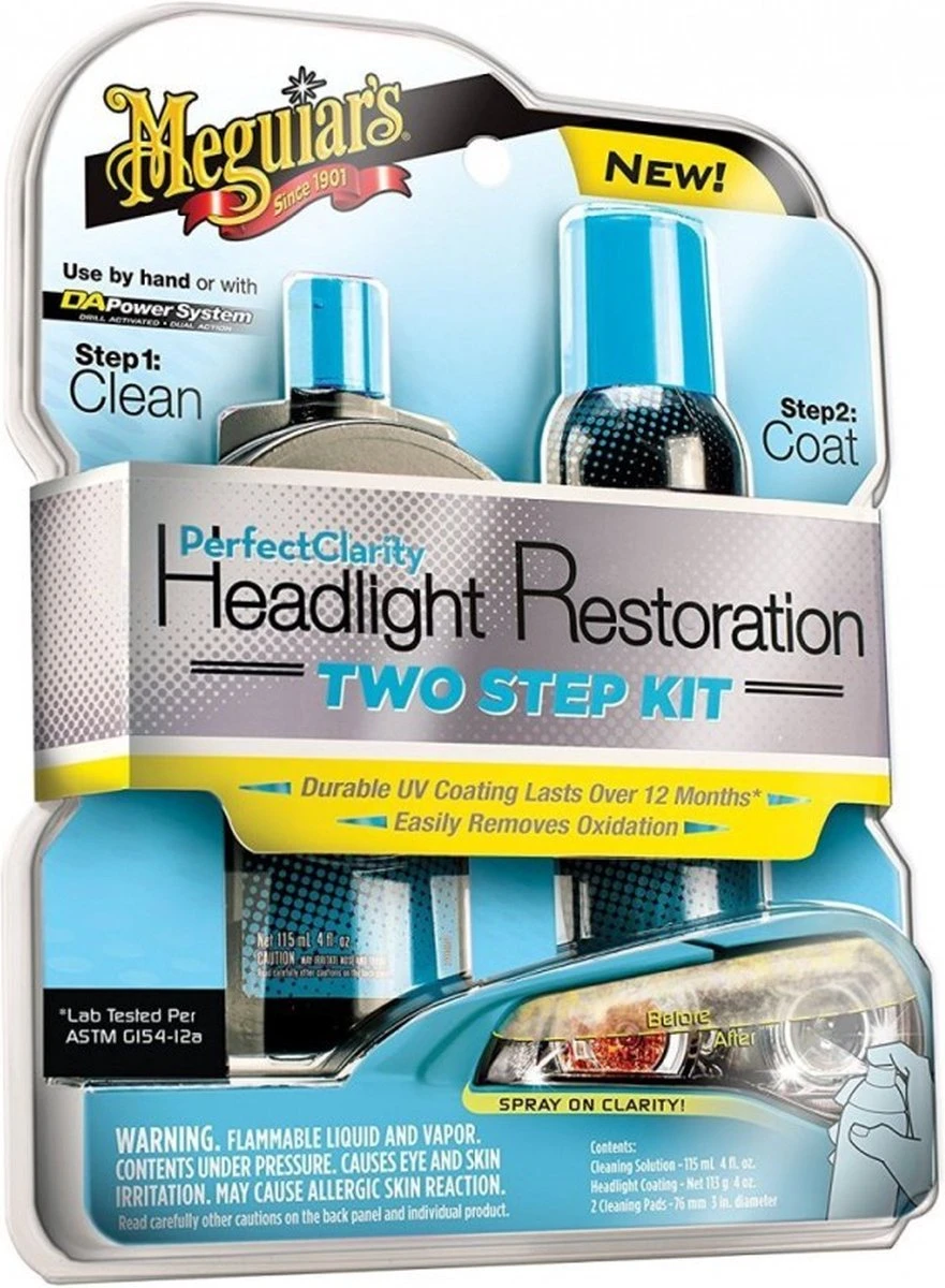 In 2 eenvoudige stappen weer heldere en mooie koplampen. Met stap 1 reinig je de koplampen en ontdoe je ze van die vervelende gele waas die de lichtsterkte vermindert. De tweede stap is het aanbrengen van een coating waarmee een superieure bescherming gecreëerd wordt die tot een jaar lang meegaat!Handmatig aan te brengen of met het DA Power System. Je vindt geen andere Headlight Restoration Kit waarmee je koplampen in slechts twee stappen weer helder krijgt en zo langdurig helder houdt en beschermt.Let op: deze kit is voornamelijk geschikt voor vergeelde koplampen.Kit bevat: