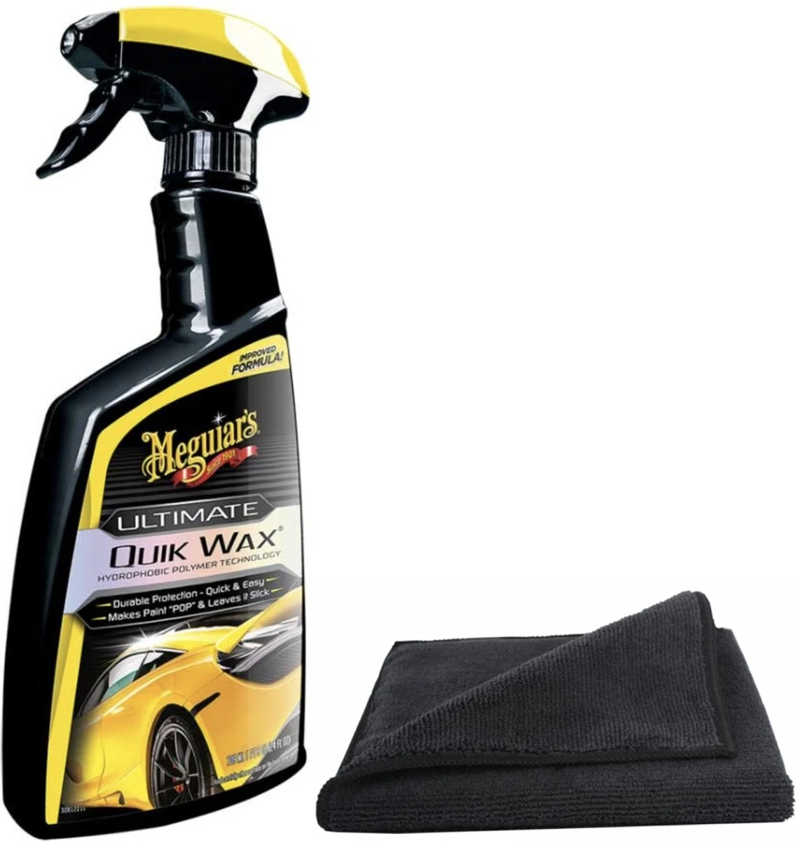 Meguiar’s Hydrophobic Polymer Technology zit nu in een gebruiksvriendelijke spraywax. Ultimate Quik Wax is de perfecte oplossing voor het onderhouden en behouden van lakbescherming tussen wax-applicaties. De speciale formulering maakt verwerking in direct zonlicht mogelijk. Het product laat geen witte resten achter op plastic en rubber. Zo gemakkelijk en snel dat u uw hele voertuig in enkele minuten kunt waxen! De krachtige bescherming en het sterke waterpareleffect gaan wekenlang mee! Ook ideaal voor het beschermen van zowel matte lak als glans- en matte folies!