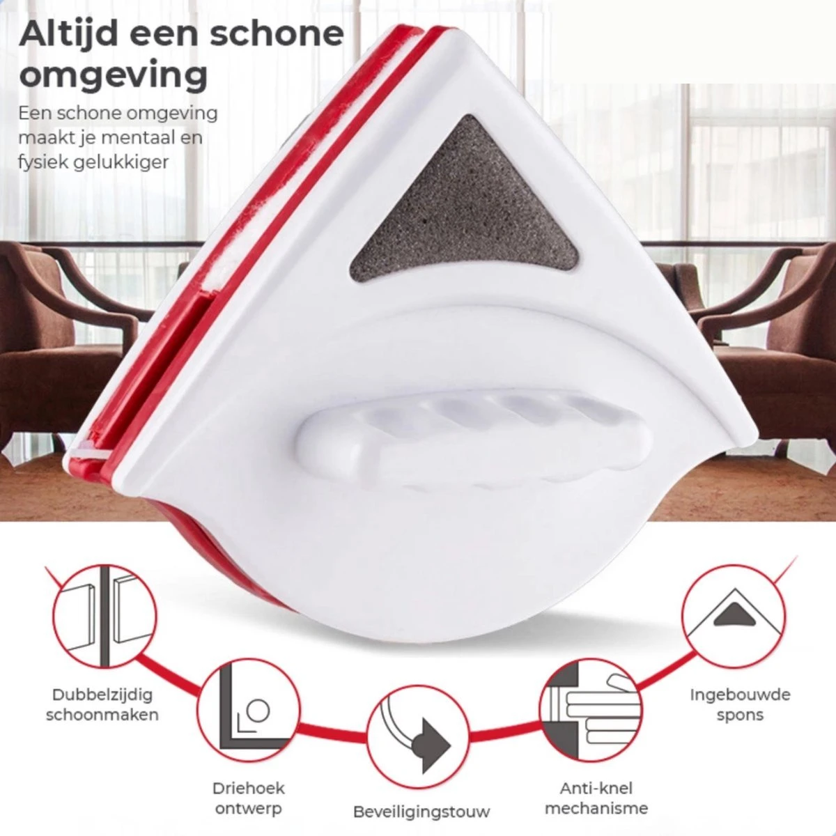 De driehoekvormige magnetische ramenwasser heeft een mooi compact ontwerp, waarbij stevig materiaal is gebruikt. Zo is er een krachtige ‘neodymium’ magneet gebruikt die ervoor zorgt dat u door middel van dit apparaat uw ramen van binnenuit kunt schoonmaken. U kunt met de magnetische ramenwasser een groot oppervlak van het raam schoonmaken en dit kost niet veel tijd. De ramenwasser is streep- en krasvrij door de anti-kras rubberen strips..