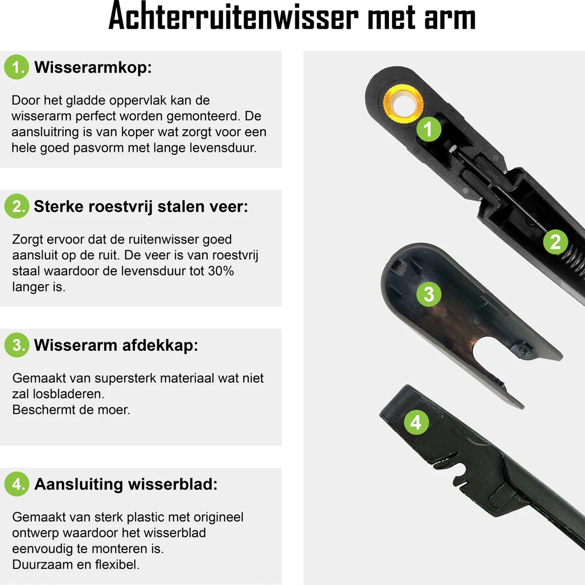 Deze ruitenwisserarm met ruitenwisser is van goede kwaliteit waardoor je verzekerd bent dat het onderdeel veilig in gebruik is en voldoet aan alle normen. Nu tijdelijk verkrijgbaar voor € 25,95.