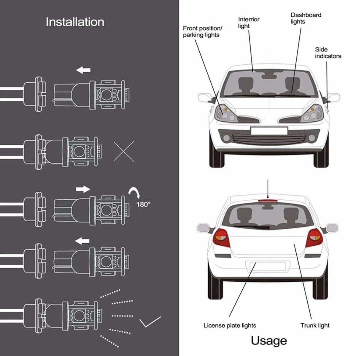 Uw huidige Halogeenlampen kunnen moeiteloos worden vervangen met dit type W5W T10 LED-lampen set. Bijvoorbeeld voor uw kenteken verlichting, binnenverlichting en stadsverlichting