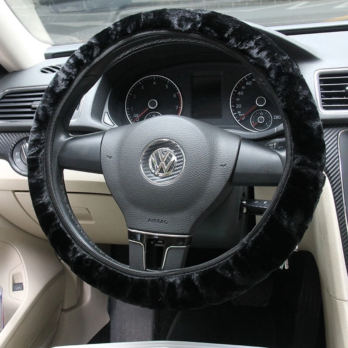 Merkloos Universele Premium Zachte Korte Pluche Winter Auto Stuurhoes, Buitendiameter: Ongeveer 25-35cm (zwart)