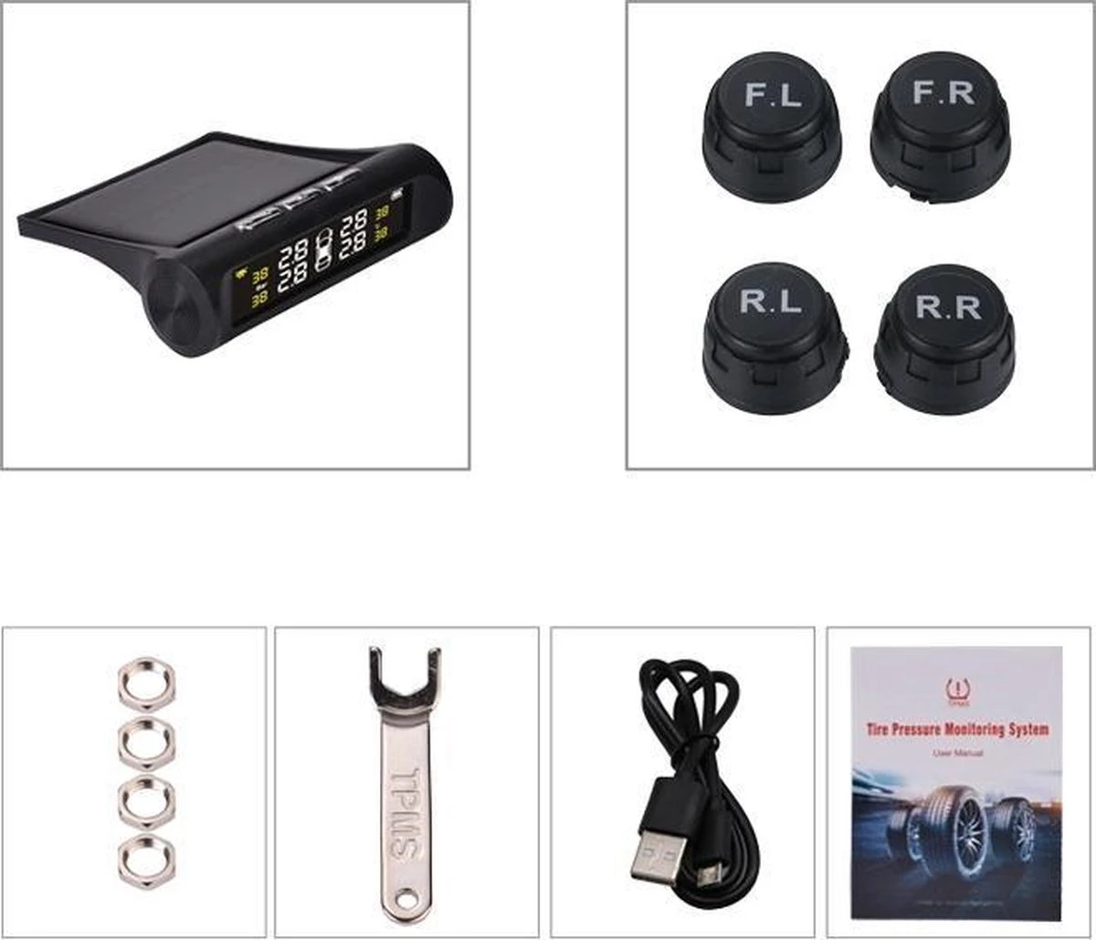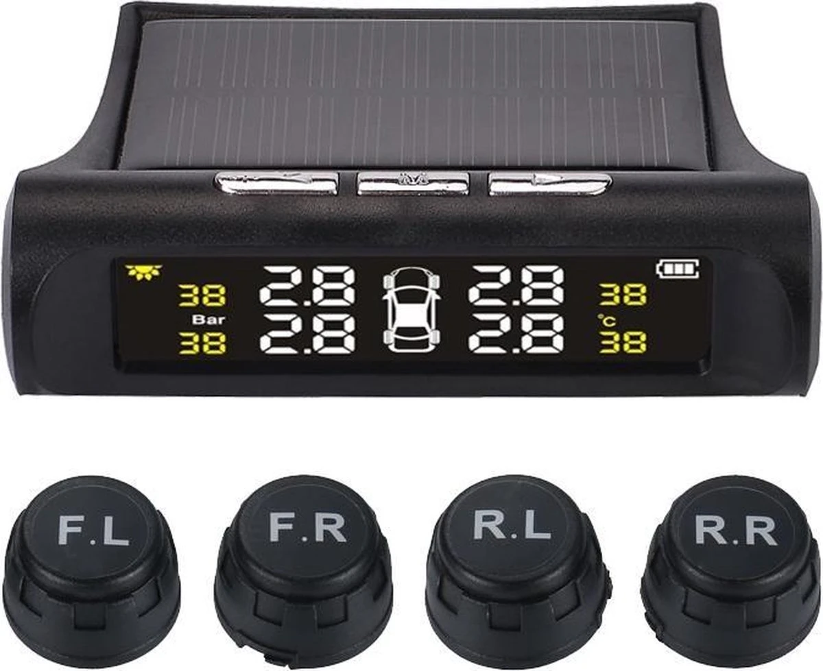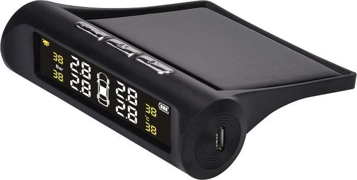 Met het digitale draadloze bandenspanning controlesysteem van Motor24 heb je altijd inzicht in je bandenspanning van je voor- en achterbanden. Het systeem is ontwikkeld speciaal voor auto’s met 4 draadloze sensoren voorzien van knoopcel batterijen. De display die op het dashboard kan worden bevestigd is voorzien van een ingebouwde accu en kan worden opgeladen door middel van zonne-energie of permanent aan de stroom worden gehouden met USB-aansluiting. Op de display kan de bandenspanning worden weergegeven in zowel bar als psi. Ook geeft de display de temperatuur aan.