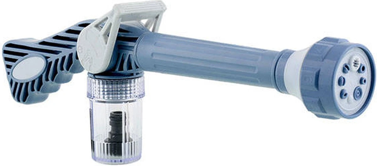 De waspistool is ook gemakkelijk te gebruiken. Sluit de tuinslang aan op het spuitpistool met behulp van de slangaansluiting(deze wordt meegeleverd) en stel de gewenste stand in op de schakelaar. De waspistool heeft een drie-standen schakelaar, die het werk vergemakkelijkt. Daarnaast beschikt de waspistool over 8 verschillende sproei standen.