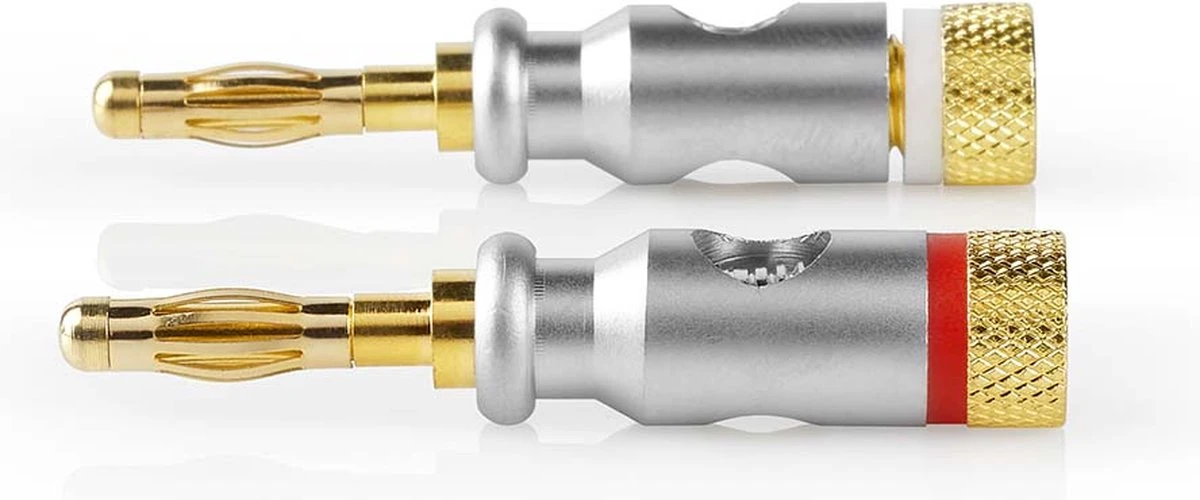 Nedis Banaanstekker – Recht – Male – Verguld – Schroef – Diameter Kabelinvoer: 7.0 Mm – Zink Legering – Zilver – 2 Stuks – Doos