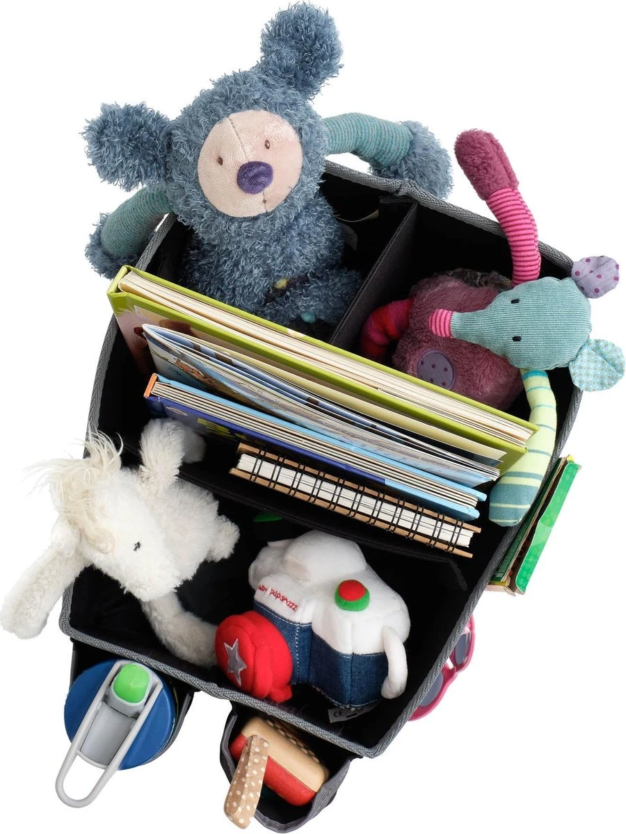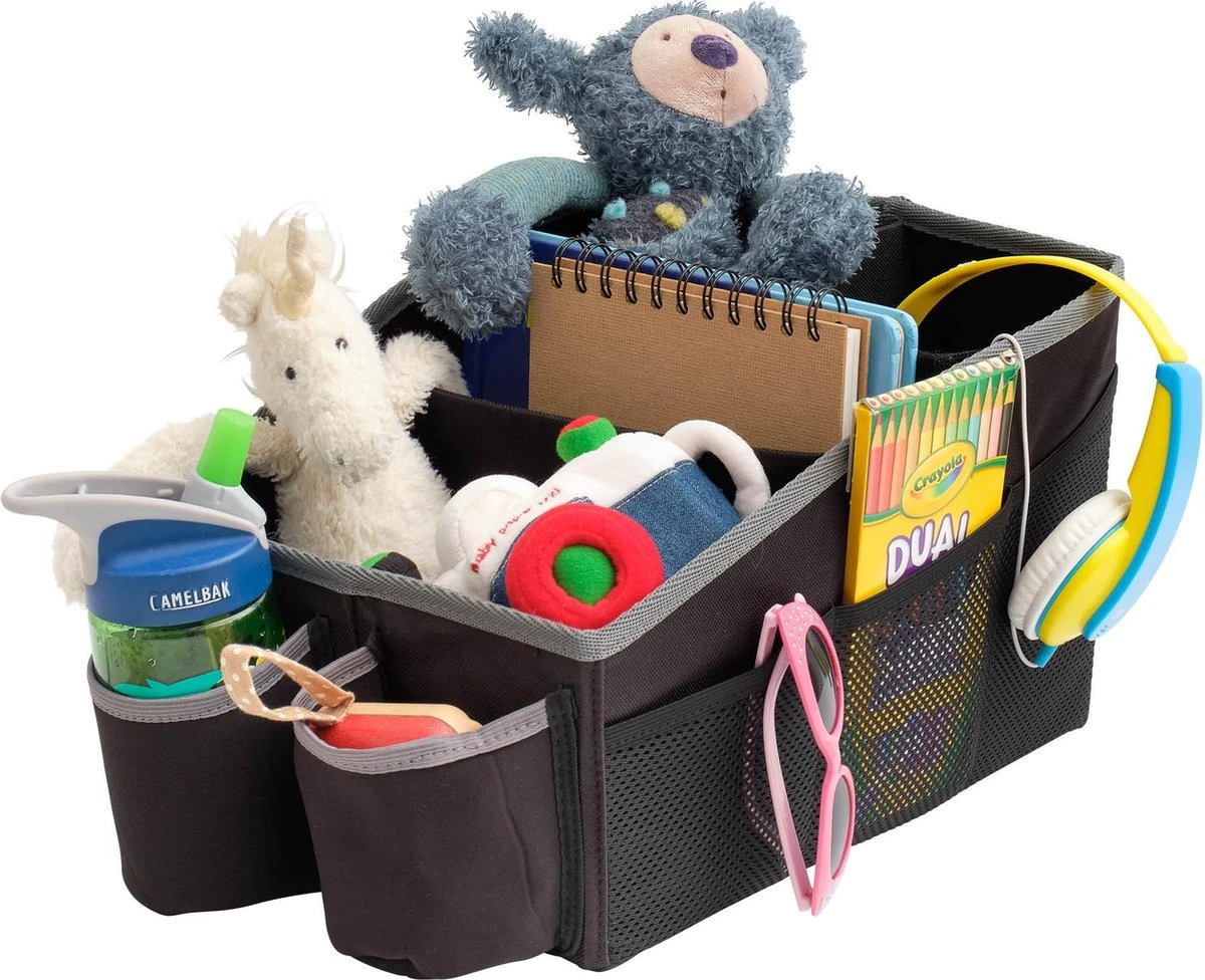 Vergeet nog een tas in te pakken! Houd de chaos georganiseerd met Prince Lionheart’s Travel ORGANIZER, een handige plek om alle “spullen” op te bergen die een gezin onderweg nodig heeft. Met aanpasbare bagageruimte, 2 geïsoleerde bekerhouders, 6 zijvakken, zou je alles moeten hebben wat je nodig hebt om te voorkomen dat een autostoel instort. En als het niet in gebruik is, wordt het helemaal vlak.