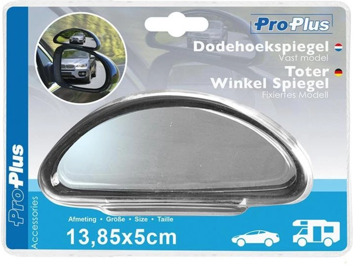 Mis nooit meer wat er in je dode hoek gebeurt met de Pro Plus Dodehoekspiegel! Deze handige opzetspiegel biedt een breedhoek zicht, waardoor je veiliger kunt rijden en gemakkelijker kunt parkeren. De dodehoekspiegel is gemakkelijk te installeren en past perfect op elke autospiegel.