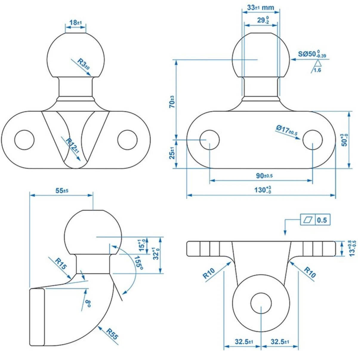 Haakse trekhaakkogel voor uw aanhangwagen. De diameter van deze trekhaakkogel is 50 mm. Deze trekhaakkogel kunt u ook gebruiken voor bijvoorbeeld uw oprijwagen, muurbevestiging of voor op een parkeerpaal.