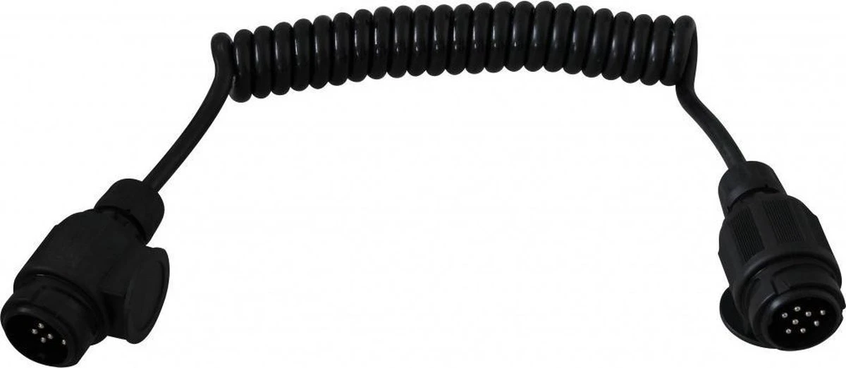 Deze spiraalkabel van ProPlus met zwevende 13-polige stekkerdozen is geschikt voor alle 13-polige stekkeraansluitingen van een aanhangwagen, caravan of trailer.