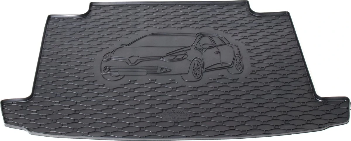 Luxe rubber kofferbakmat met opdruk van het model geschikt voor Renault Clio 4 Grandtour vanaf 2013. Enkel geschikt voor de bovenste laadvloer.