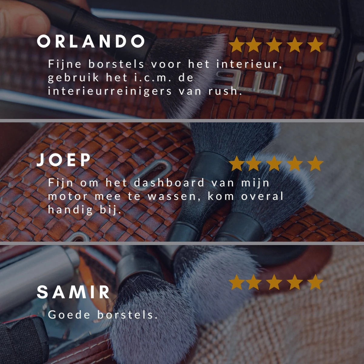 Hoe fijn is het om in een frisse en schone auto van A naar B te rijden. De RUSH Interieur Borstel is een borstel set die specifiek is ontworpen voor de kwetsbare onderdelen van het interieur. Zo houd jij onder andere instrumentenpanelen, ventilatieroosters, knopjes en gaatjes schoon.