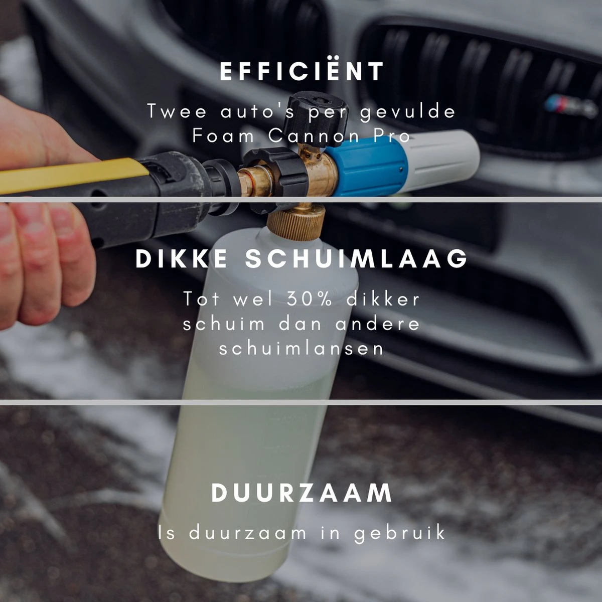 De RUSH Snow Foam Cannon Pro beschikt over een roestvrijstalen gaasfilter en een nieuwe generatie sproeiblad om tot wel 30% meer schuim te produceren. De Foam Cannon Pro heeft een drukbereik van 90-150 bar en is daarmee geschikt voor thuisgebruik, maar kan ook in combinatie gebruikt worden met een professionele Kärcher K-series.