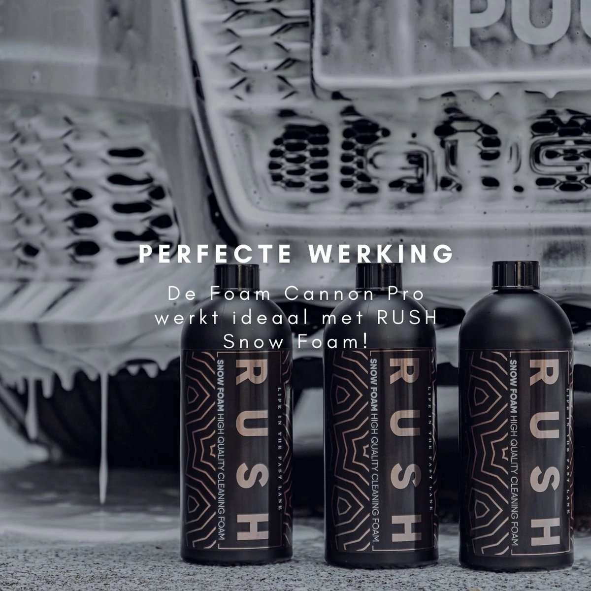 Het foamen van een auto is ontzettend leuk om te doen. Gebruik voor de beste werking RUSH Snow Foam in combinatie met onze RUSH Foam Cannon Pro en creëer een extra dikke schuimlaag.