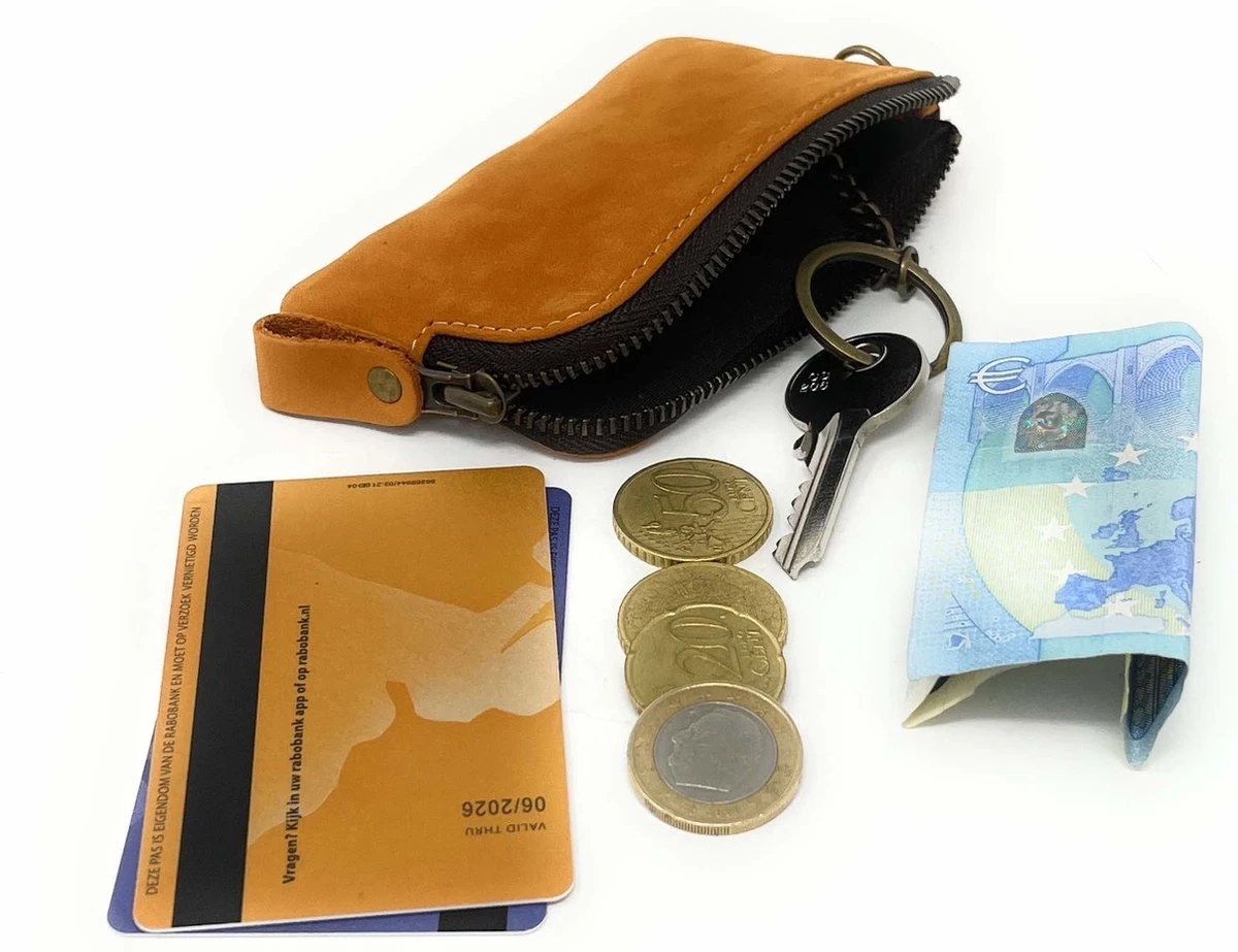Deze praktische sleuteltasje is gemaakt van echt leer. Het grote vak met ritssluiting is ideaal voor het opbergen van uw huissleutels, autosleutels, munten en kaartjes. Het is erg handig om kleingeld of kaarten in te doen.