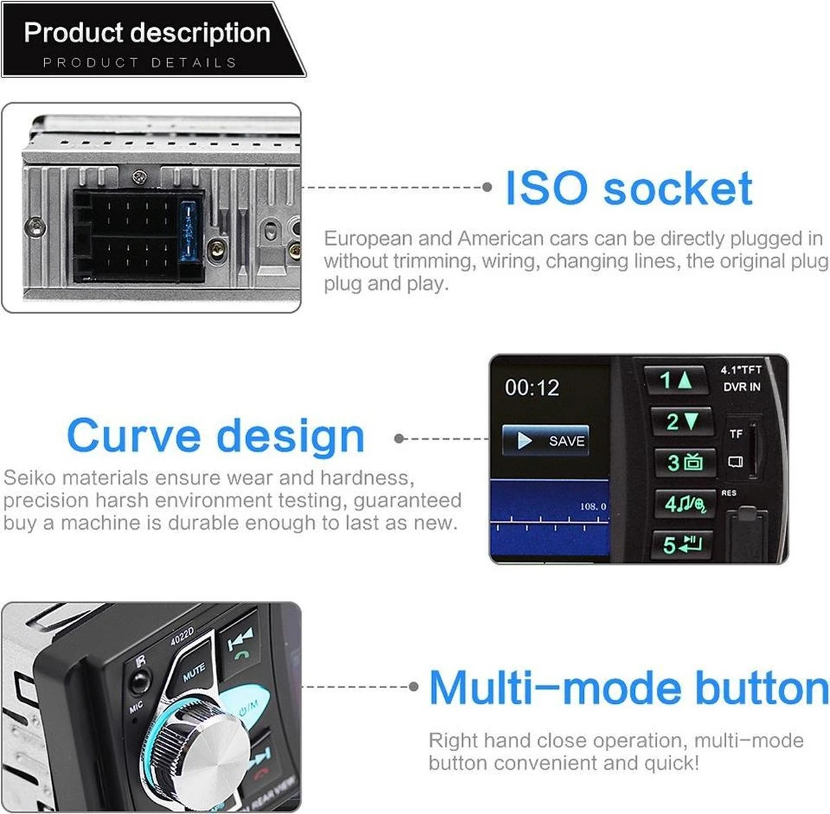Het scherm en de simpele bediening zorgt voor optimaal plezier van de radio in de auto. Speel uw favoriete nummers af via Bluetooth, MP3, MP4 of SD of luister naar de radio. Ook kunt u zelfs HD video’s bekijken via de radio als uw telefoon is aangesloten.
