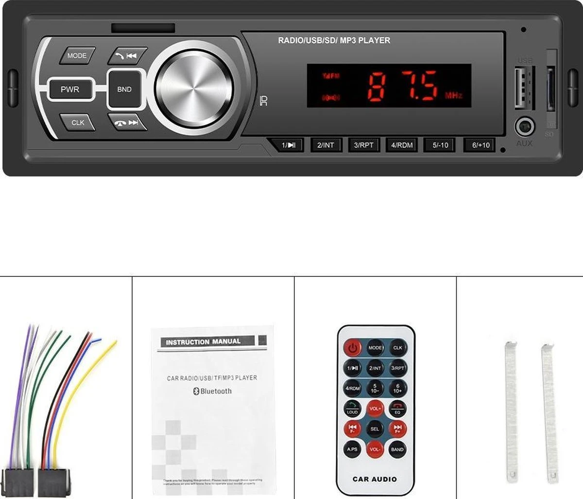 De autoradio is gemakkelijk aan te sluiten dankzij de standaard maat. Er worden stekkers meegeleverd die u handmatig kunt doorverbinden met de huidige installatie in uw auto. Daarnaast is er 1 AUX-aansluiting en 1 USB-aansluiting aan de voorzijde van de autoradio.