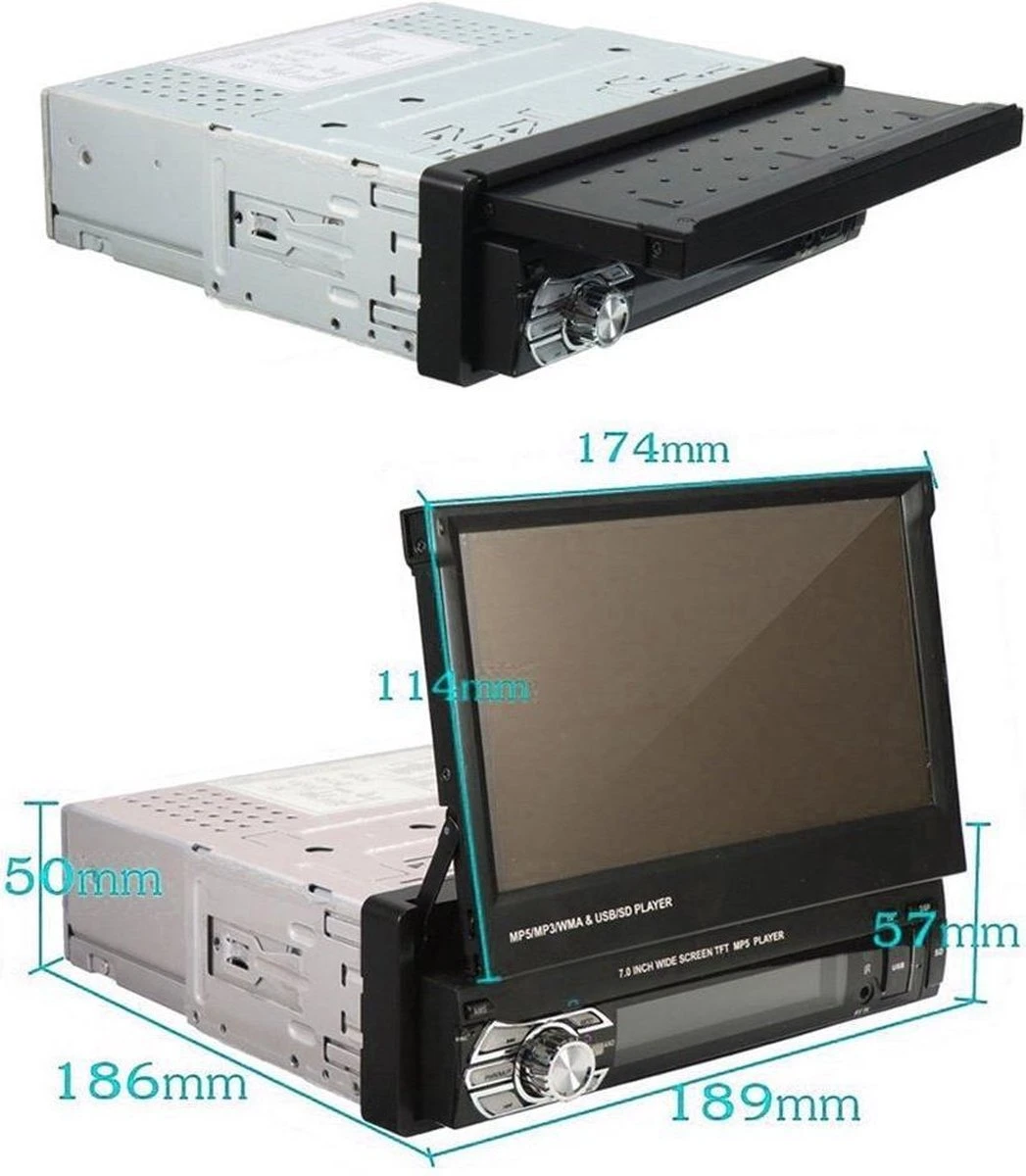 – 7 inch uitklapscherm 1 Din met touchscreen