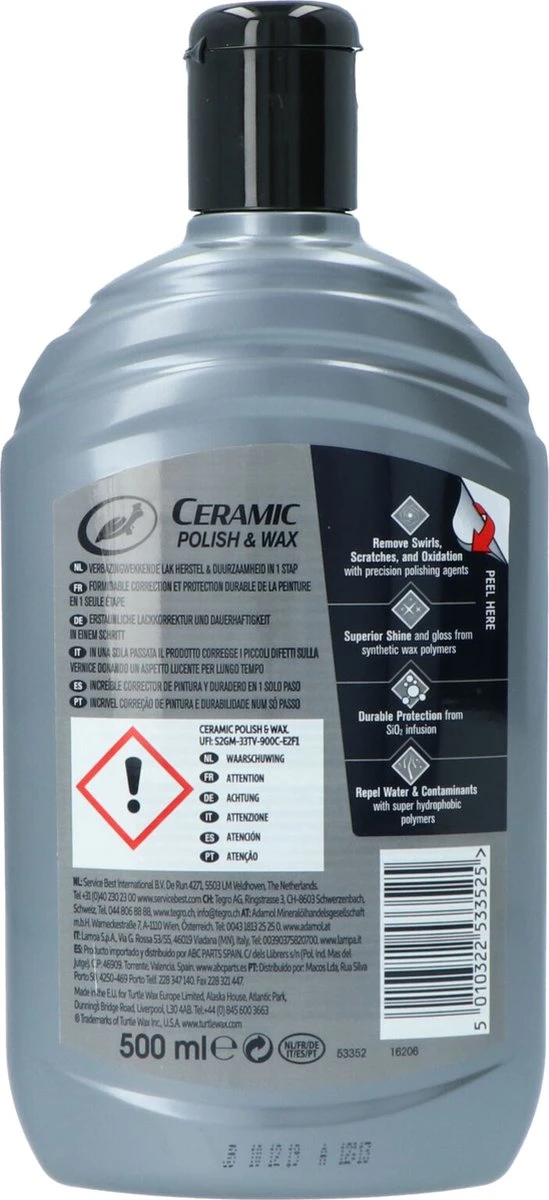 Turtle Wax Hybrid Solutions Ceramic Polish & Wax is een alles-in-één formule die verbazingwekkende helderheid, glans en bescherming biedt. Geavanceerde SIO2-ingrediënten zorgen voor extreem parelen van het water en bescherming.