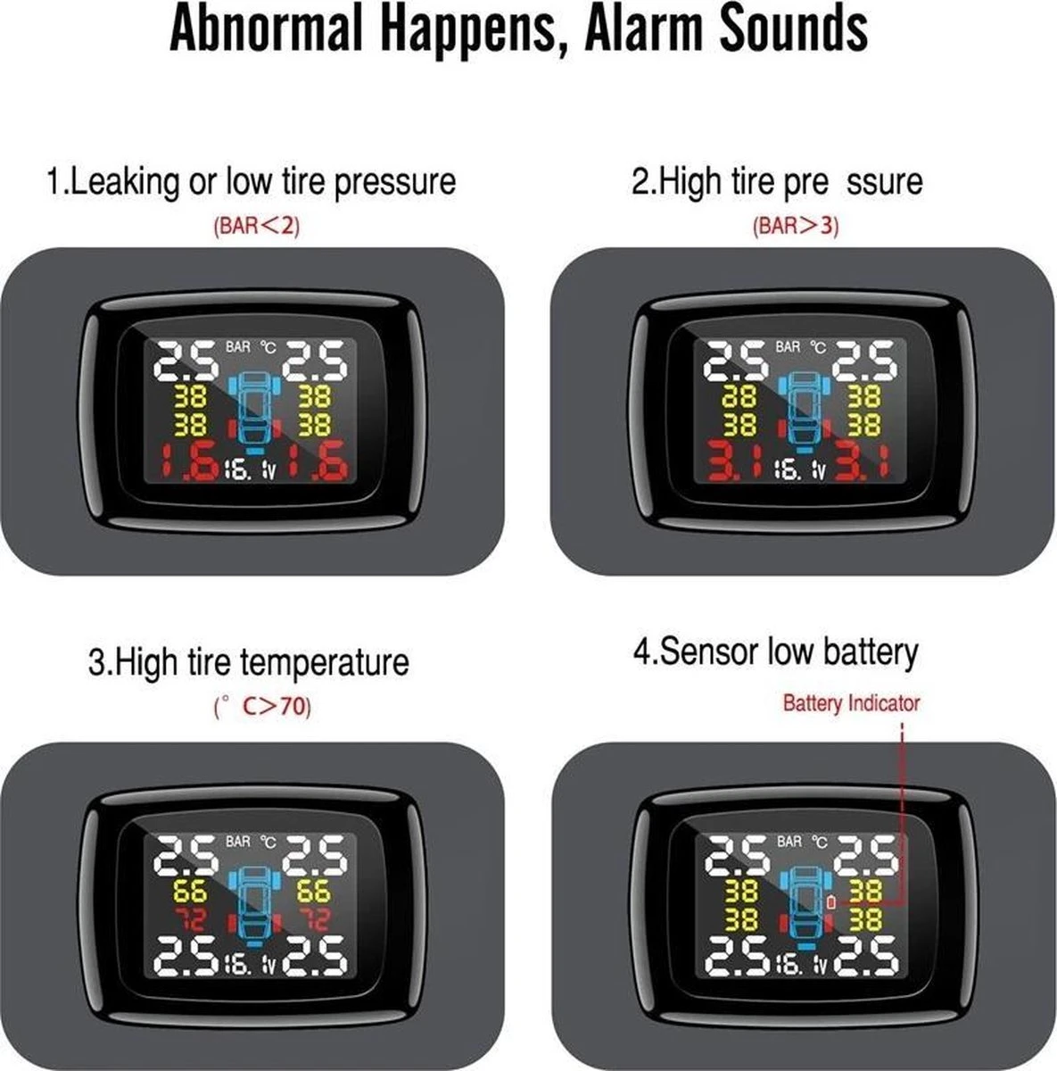 Twente Shopping auto bandenspanningscontrolesysteem – real time scherm – 4× externe sensoren