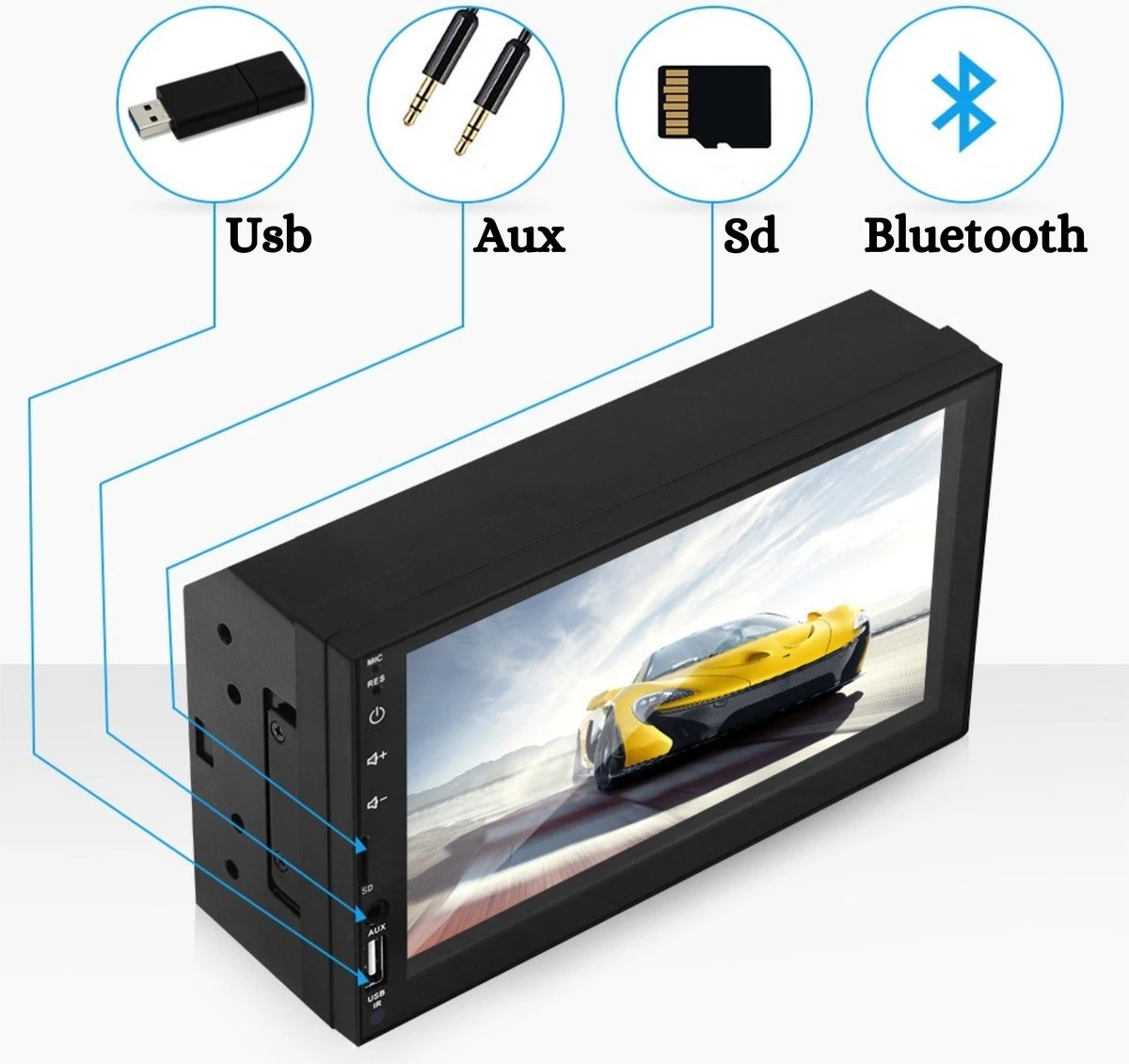 De autoradio beschikt over een 7 inch HD Touchscreen. Op dit scherm kun je video’s afspelen tijdens het