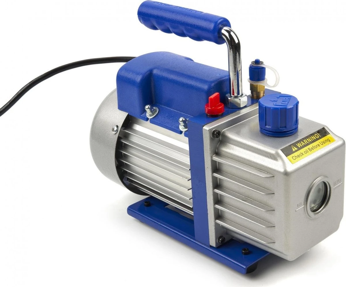 Deze complete koelmiddelenset bevat de vacuümpomp en de 2-voudige manometerset. Deze vacuümpomp is ontworpen voor professioneel gebruik in koel- en airconditioningsystemen. De pomp zorgt voor een vacuüm, waardoor het achteraf vullen van de airconditioning met koelstof mogelijk wordt. Dankzij de technische kenmerken is de pomp geschikt voor koelingsherstel, drukmachines, medische apparatuur, vacuümverpakking, warmvorming en andere extractiewerkzaamheden. De pomp heeft een aluminium behuizing en een praktisch oliekijkglas, waarmee je het oliepeil op elk gewenst moment kunt controleren. Hij heeft ook een geïntegreerde handgreep voor eenvoudig transport. Deze 2-voudige manometerset is geschikt voor het vullen en inspecteren van airconditioningsystemen door systeemdrukmetingen te lezen. Hij is geschikt voor gebruik op alle A/C’s van auto’s, en commerciële en huishoudelijke A/C koelsystemen. De kleurgecodeerde meters zijn snel, duidelijk en gemakkelijk af te lezen. De meters zijn ingekapseld in een beschermende bumper om schade te voorkomen. Je kunt de geïntegreerde stalen haak gebruiken om de meters snel en gemakkelijk op te hangen. De manometerset heeft een duurzame constructie.