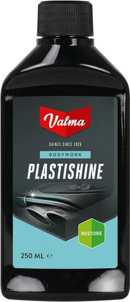 Doffe kunststoffen oppervlakken aan de auto zijn voorbij. Valma Plastishine geeft dof kunststof glans en haalt de kleur weer op. Plastishine is bedoeld voor alle niet gelakte kunststof onderdelen aan de buitenkant van de auto zoals bumpers en sier strips. Het reinigt zeer intensief en werkt snel en veilig. Na het reinigen glanst het kunststof oppervlak weer als nieuw! Inhoud 250ml.