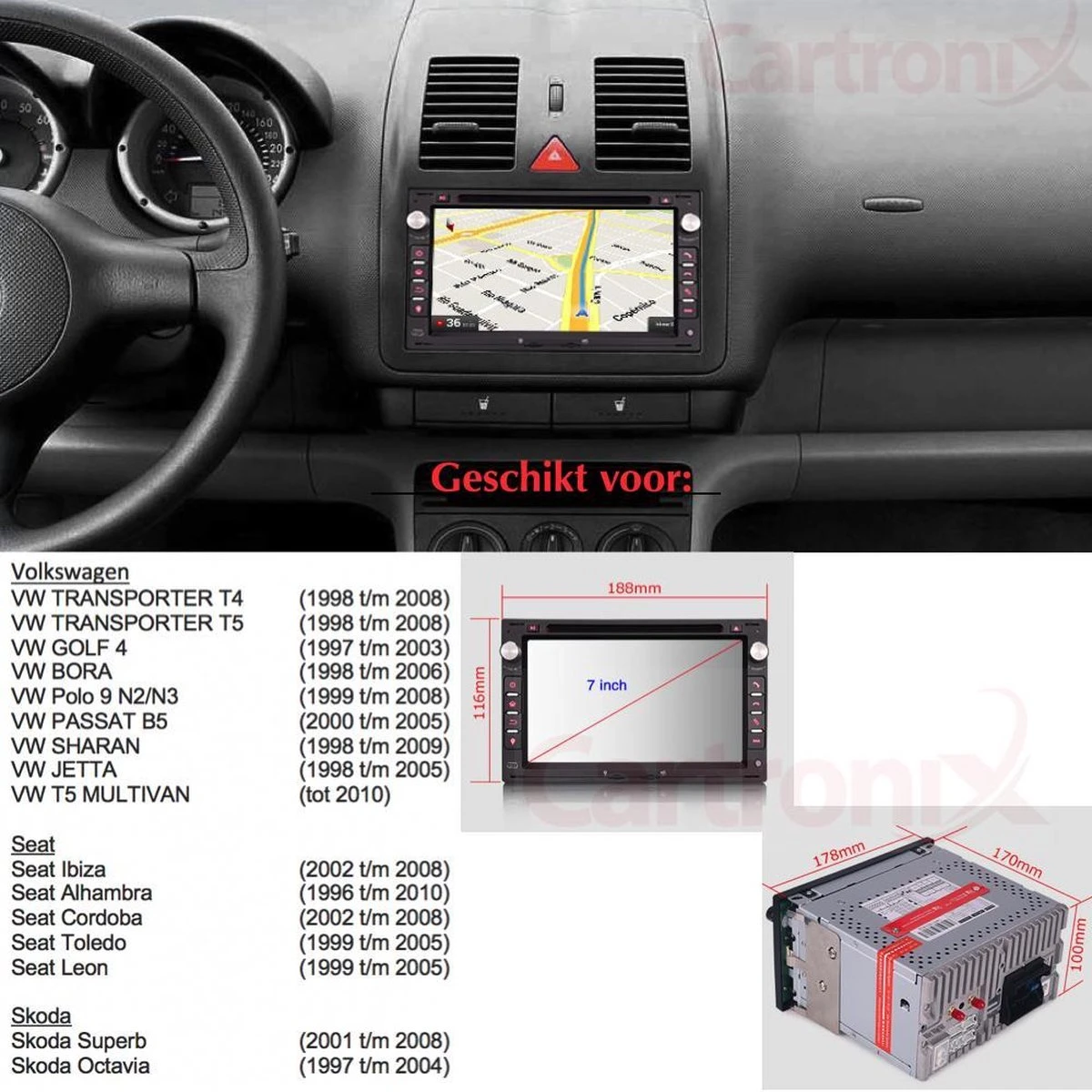 De supersnelle dubbele DIN-autoradio met een 6,2 “HD-touchscreen scherm, welke uw auto zal ombouwen tot multimedia-lounge. Deze radio is geschikt voor diverse Volkswagen & Seat modellen. Met de 7 kleuren LED-knopopties, de optie om een ​​fabriekslogo te gebruiken op het startscherm en alle functies die deze 2DIN radio kan bieden, is het een geweldige aanvulling op het interieur van uw auto.