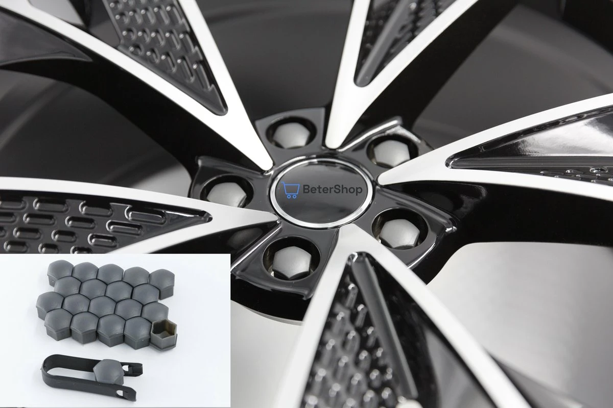 Deze mooie universele kunststof dopjes monteer je gemakkelijk over je wielbouten of wielmoeren. Zo ben je direct van die lelijke en verrroeste wielbouten of wielmoeren verlost. Met de handige tweezer verwijderingstool kan je de wielmoerkapjes telkens weer verwijderen en opnieuw monteren. Deze dopjes voor je wielbouten of wielmoeren is een echte lust voor het oog. Je lichtmetalen velgen zullen een stuk mooier uiterlijk hebben met deze wielmoerkapjes.