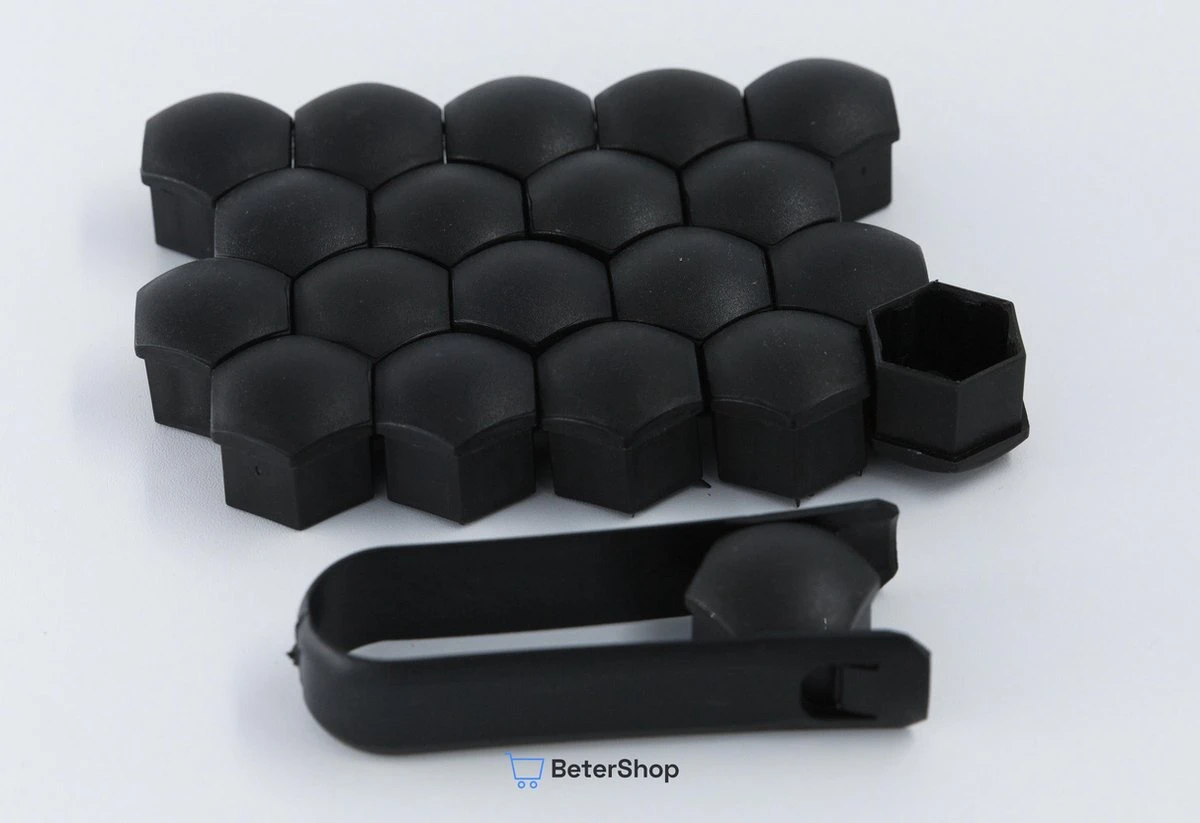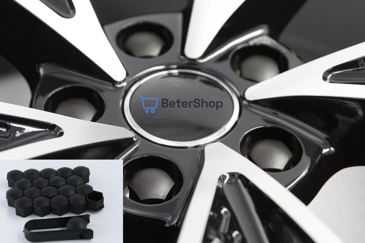 Wielmoerkapjes 17 Mm – Zwart Matt – Kunststof – Set Van 20 Stuks Incl. Tweezer Tool – Universeel