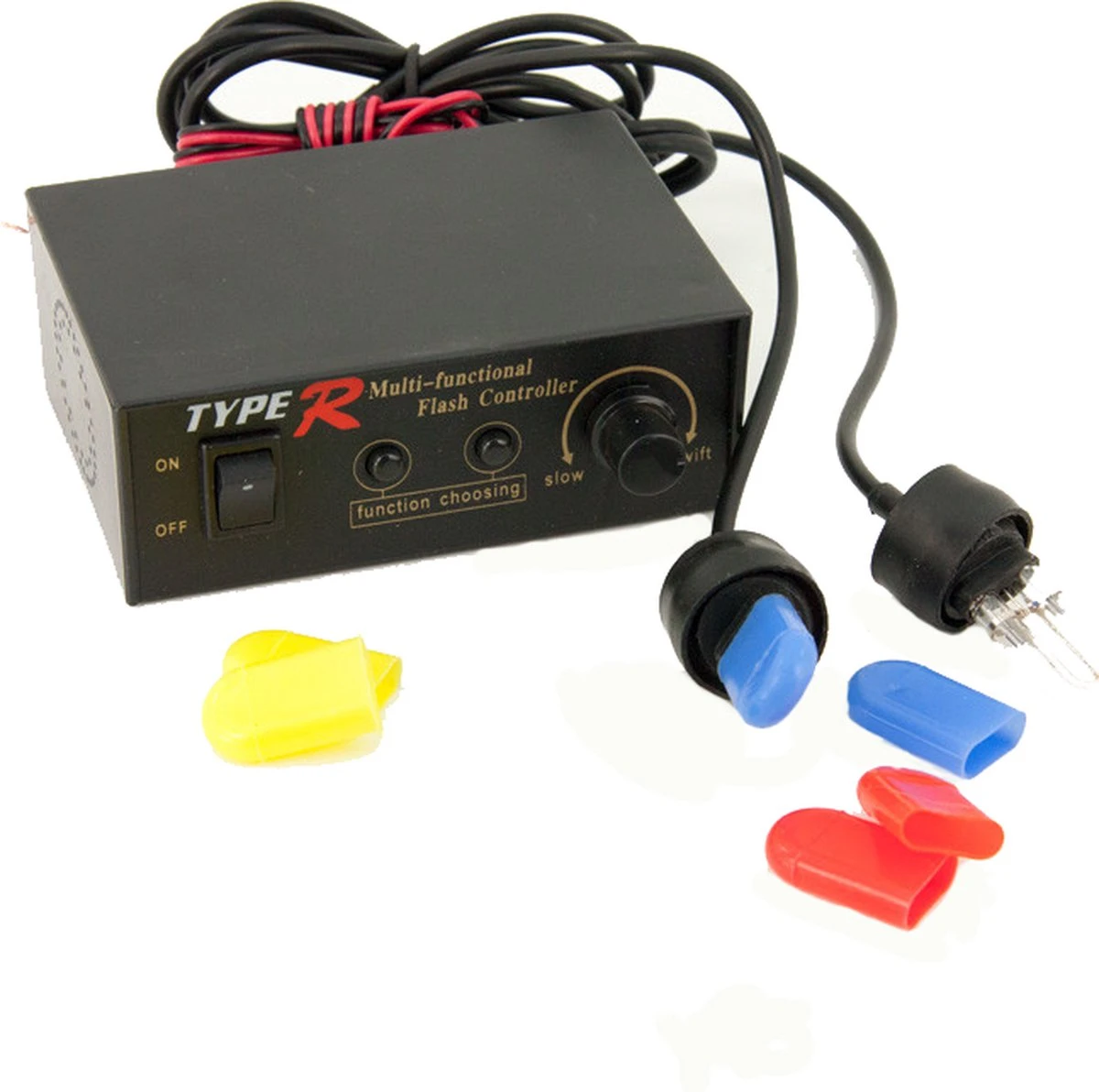 Deze handig flitser is perfect wanneer u een simpele maar goed werkende flitser nodig heeft. De flitser is voorzien van 4 heldere xenon lampjes die u naar wens kunt aanpassen met de meegeleverde controller. Zo kunt u bijvoorbeeld de snelheid van de flitsen aanpassen. Verder vwordt de set geleverd met kapjes in 4 verschillende kleuren (blauw, rood, wit en geel). Hierdoor kunt u altijd de kleur gebruiken die u nodig heeft. De flitser werkt op 12 Volt en is eenvoudig aan te sluiten.